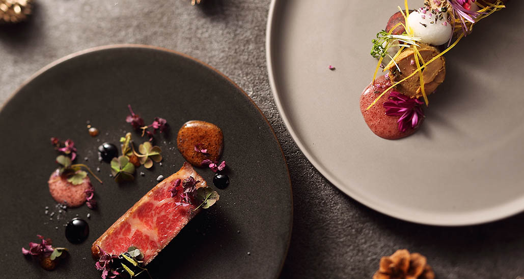 このプランは、特選黒毛和牛と、淡路・播磨灘などから仕入れる近海の魚介を鉄板焼きで味わう「ステーキ&魚介ディナー」。大切な日の食事として、落ち着いた空気の中で進められます。