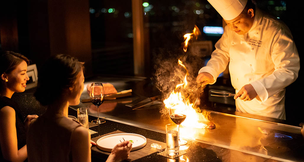 神戸メリケンパークオリエンタルホテル最上階の「ステーキハウス オリエンタル」は、目の前の鉄板で焼き上げるライブ感と、神戸港の景色を同時に楽しめるレストランです。