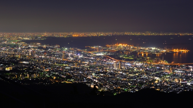 六甲山の中腹に位置する「掬星台」は、神戸を代表する夜景スポット。名前の通り「星を掬える」ほどの輝きと称される眺望が広がり、神戸市街から大阪湾までを一望できます。
