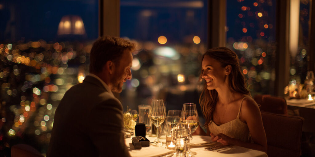 夜景を背景にした王道の演出から、レストランでのサプライズ、自宅での温かみある瞬間まで──。ここでは、クリスマスシーズンにおすすめの3つのプロポーズシーンを紹介します。