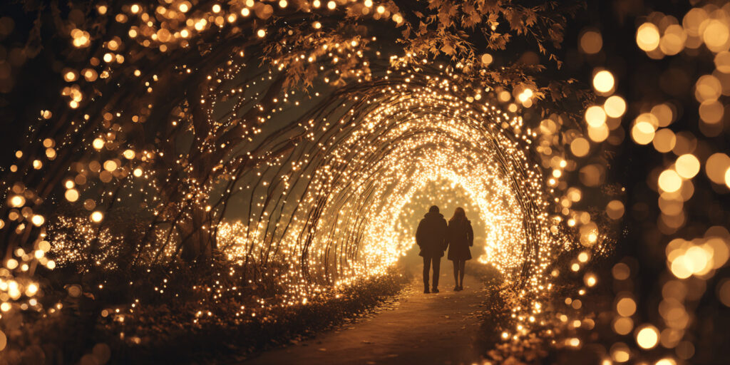 冬の夜を彩るイルミネーションは、プロポーズ演出にぴったりの舞台です。「光のトンネル」や「ハートのオブジェ」の前で指輪を差し出すだけでも、感動的なシーンが生まれます。